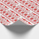 Silhouette images of Scottish Terrier dogs are the feature in this repeated pattern on this fun Christmas gift wrapping paper. Along with the Scotty dog images are paw prints, snowflakes, and the script text "Merry Christmas". Everything is on bright Holiday red on a white background.