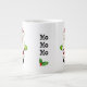 Cute helgdag jumbo storleka mugg sportar en vit tomt med stor röd näsa och ljusa gröntar. Redigera textrutan "Ho Ho Ho" i mitten. Du väljer stilar.