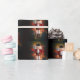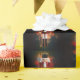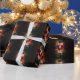 Bilden har en röd Nutcracker med runt inslag på svart bakgrund.