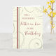 Födelsedag för far enligt lag med modern och enkel röd och beige utformning och tankfull vers.
