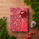 Röda och guld konfeetti mönster jul, vin som omsluter papper. Utformningen har en fin guld mönster på en röd texturerad bakgrund.