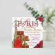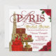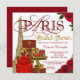 Paris inbjudningskort för möhippan med vackra guld Eiffel Torn, elegant Paris-presenten paket, guld glitter högklackskor och finare-rödParisskript på rik-bakgrund. Denna vackra Paris inbjudningskort för möhippan är lätt att anpassa för ditt evenemang genom att helt enkelt lägga till dina detaljer i teckensnittet stil och färg, och den text du väljer. Detta är en tryckt design utan verkliga diamanter, juveler, glitter etc.
