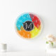 Red Orange Gult Blue Mosaic Modern Monogram Stor Klocka