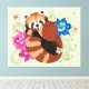 Cute Red panda som håller svan. Lotus blommor och henna i en grönt finns runt pandan. Alla ritade i en tatuering stil