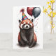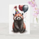 Lägg till en liten bit stollig i firande med det här fina Röda Panda Party-hälsningskortet! Det här kortet är en perfekt för födelsedagar och glatta händelser och har en berömvärd röd panda i en färgfull party-hatt omgiven av ballonger och fester. I format och storlekar i många är det idealiskt för att sprida mer glädje.