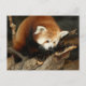 Ett foto av en ynklig liten röd panda tittar ner från där han är sitta på träd grenar vid djurparken. Upphovsrätt 2010.