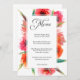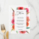 Det här färgstarka contemporaryns bröllopsmenykort för bröllopsresor innehåller färgade poppies i skuggor av rött, vattenmelon, rosa och orange med spridda löv av grönt för en smart och vacker kombination. Det är ett bra val för vår och sommar bröllop och fungerar bra med färg-program med varmt hued. Den blommigt inslag som används i detta mönster har anpassats från blommor genom kreatethecut.
