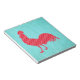 Ett rött, kvatrefolierat silhuett av tupp ligger på en färgad med turkos med en träkornig struktur.
