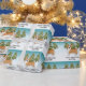 Desteis ursprungliga tecknad illustrerar en röd och vit jackar hund av färg Pembroke Welsh Corgi. Hund placeras på en vinterscen med tre gröntar för träd. Bakgrunden är en blå till vit övertoning som ge kallets vintag. Det finns ett anpassningsbara textområde som nu lyder: "God jul!" tillsammans med ett eget namn.