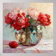 Red Peony Bouquet Painting Poster