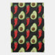 Tecknad stil teckning av rödchilipeppar och avokado... Ursprunglig mönster-design med svart bakgrund. Anpassningsbar kökshanddukar. Tanken på krydda och hälsosam älskare.
