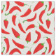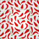 Roligt med en mönster av rödpeppar på vit bakgrund.