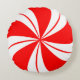 Lägg till lite roligt till din juldekanal med den här noveltyn. Denna runda kudde liknar en stor, röd pärmmynta.