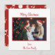 Foto på god jul anpassningsbar. Röd bakgrund med snögubbar, Julgranar och lager.
