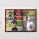 Lägg till dina tre barnfoton med namn och år för ett julhälsningskort för land, ett roligt julhälsningskort. Gamla antika röda Pickupa Lastbil med Julgran i sängen, med manustypografi God jul, det vackra vintage-helgdag i södra stil med rött och svart check buffel pläderade Land land som en flanskjorta.