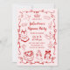 Editable Color Red Pink Girly Hand Drawn Galentine's Day Pajama Party Invitation.