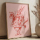 Red& Pink Storybook Vintage Rabbit Illustration Poster