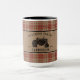 Ett vackert, rustiskt tema, två ton stort kaffe mugg med din familj namn och "bondhus", ranch, hemost eller annan önskad text och ett fastställt datum. Denna unika anpassad design-bild har hand plockade på en vintage jordbrukstraktor på en stil-tryckbaksida som är täckt av en pärlskiva och omgiven av vackra land-röda och khaki. Om du vill se fler design som denna kan du besöka min butik här på "Zazzle.com/Rustic_Charm". Tack.