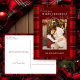 Lägg din omhuldade familjefoto i den här vackra, traditionella och klassiska röda julen i mönster med mörk röd gräns, en porträtt-bildskärm och redigerbar text fält. Baksidan innehåller ytterligare text fält, blank inslag och plaid gräns.