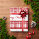 Fint papper med God jul i modern kalligrafi med candy cane och röd pläderad bakgrund. Matchande objekt i vår butik.