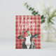 Skicka ett leende den här julhelgen med det här söta baby-julkortet. Utformningen har en vattenfärg, svart och vit kalv, röd pläterad bakgrund och vinterblommor med holly.