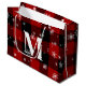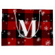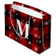 Den här presentsäcken för festlig anpassningsbar har en rustik vinterdesign. Bakgrunden är ett rödhårigt mönster med fallande snöflingor. Ett exempel på ett monogram skrivs ut mitt i kudden som du kan anpassa för att inkludera din egen anpassningsbar eller annan text.