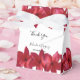 Den här designen har röda frangipani-/plumeriablommor. En tropisk formgivning som är elegant utformad med röda frangipani-blommor och centrerad formulering. Brödets och brudgummens namn betonas med en finare-manustypografi.Dessa populära tropiska hawaiiska blommor är idealiska för ett elegant-mål-badbröllop. Tropisk bröllopsaffär med modernt inslag. Det finns också möjlighet att matcha bröllopsinbjudningar och andra artiklar i kontorsartiklar.