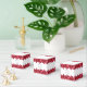 Den här designen har röda frangipani-/plumeriablommor. En tropisk formgivning som är elegant utformad med röda frangipani-blommor och centrerad formulering. Brödets och brudgummens namn betonas med en finare-manustypografi.Dessa populära tropiska hawaiiska blommor är idealiska för ett elegant-mål-badbröllop. Tropisk bröllopsaffär med modernt inslag. Det finns också möjlighet att matcha bröllopsinbjudningar och andra artiklar i kontorsartiklar.