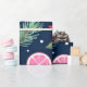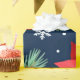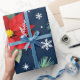 This festive design features a rich navy blue background adorned with traditional and unexpected elements: