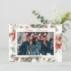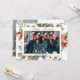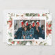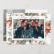 Lycklig Kwanzaa 2-fotojulkort. Framsidan visar ditt foto i ram omgivet av röda poinsettias, holly, bär och gräs grenar. Kortets baksida har plats för ett foto och din jul hälsning.