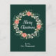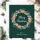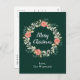 Den här roligten och det här julvykortet för högvattenfärg kan vara personlig med namn eller titel. Den har en vattenfärgad julkrans med röda poinsettias och holly på mörk grönt bakgrund. Texten kombinerar handskript och modern serif typsnitt för ett elegant och sofistikerat utseende.