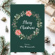 Den här roligten och julkortet för högvattenfärger kan vara personlig med namn eller titel. Den har en vattenfärgad julkrans med röda poinsettias och holly på mörk grönt bakgrund. Texten kombinerar handskript och modern serif typsnitt för ett elegant och sofistikerat utseende.