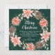 Den här roligten och det här julkortet för högvattenfärger kan vara personlig med din familj namn. Den har en krans med röda poinsettias och holly på mörk grönt bakgrund. Texten kombinerar handskript och serif typsnitt för en elegant och ett sofistikerat utseende.