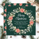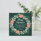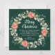 Den här roligten och det här julkortet för högvattenfärger kan vara personlig med din familj namn. Den har en krans med röda poinsettias och holly på mörk grönt bakgrund. Texten kombinerar handskript och serif typsnitt för en elegant och ett sofistikerat utseende.