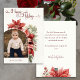 Grymma klassiska vattenfärgsröda poinsettias och hullbär med vintergrönt runt ett arkeformat enkelt foto ram med elegant anpassningsbar Glad helg textgrafik och redigerbar text fält. Baksidan har extra fält och kompletterande blommigt.