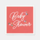En toppen söt och snyggt babyduschnapkin-design med ett lekfullt skript med texten "babydusch" och små blommor från vår. Den här konstruktionen är en del av en ladybug-duschsamling i kärlek kryp. Det är en perfekt party-dekormedbrottsling för alla som förväntar sig ett sött flicka!