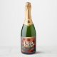 Söt rödolja målade poppies med sol som belyser dem. Röd och grönt. Personlig bröllop champagneetiketter med Bride and Groom initialer och bröllop.