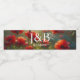 Söt rödolja målade poppies med sol som belyser dem. Röd och grönt. Personlig bröllop vattenflaska etiketter med Bride and Groom initialer och bröllop.