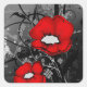 Dessa klistermärken har en svart och vit blommigt med röda påsar. Gör underbara kuvertförseglingar.