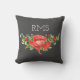 Red Poppy on Grått Anpassade Monogram Kudde