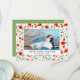 Tack för bröllop-kortet med bröllop-fotot inuti en blommigt ram av röda påsar med grönt löv.