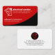 Täcket har en röd och svart böjd lagrar-design. Överst i det övre hörnet finns en logotyp för brev-e-lampskretsar som du kan använda. Brev-e kan representera "elektriker", ditt företag namn etc. Förutom logotypen finns namn och dess kontaktuppgifter. Nära kortbasen är ditt prestigefyllda namn och en slogan som du kan ändra på. Överst i ett vitt omslag finns logotypen brev-e, följt av kontaktuppgifter och ett sloganalternativ. Ett underbart kort för elektriker till användan. #electrcian #Electricalservice #electricalservice #electricalentreprener #electricalreparer #electricalEnginer #bulb #electricpower #electricalwiring #plug #zazzlemade