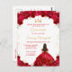 Den här eleganten och den glamorösa inbjudan till Quinceañera-födelsedag innehåller en vacker prinsessa med mörk hår i en röd boll-grav. Texten kombinerar handskript och modernt sans serif typsnitt för ett klassligt och sofistikerat utseende. Blommigten och guld-konetti skapar perfekten blandning av rustik och chic. Grafik efter www.etsy.com/uk/shop/SunflowerDayLove