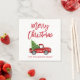 Penselskript Vattenfärgsfärgad Vintage Red Lastbil med Julgran Pappersservett - röd