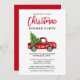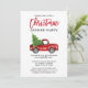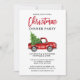 Penselskript Vattenfärgsfärgad Vintage Röda Lastbil med Julgran - inbjudan till julmiddagsfest - Rött skript, Rött bak