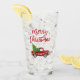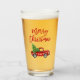 Penselskript Vattenfärgsfärgad Vintage Red Lastbil med Julgran - God jul glas