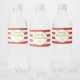 God jul vattenflaska-etiketter med rött och vitt rand mönster, guld och eget namn.