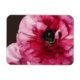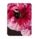 En digital målning av röda Ranunculus-blommor på en chokladbrun bakgrund.