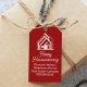 This professional realtor gift tag is custom made with your real estate company name under the modern white cursive script and house image. These bright red realty business housewarming tags feature a house logo image for home builder or realty agent company marketing.