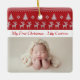 En årgång Jul träd och renargument svettas mönster i rött ovanför personligen för din baby första jul. Anpassa dessa prydnadsföremål i helgdag med ett vackert nyfött foto under nostalgiskt Julafton-design. En underbar anpassningsbar för nya mor- och farföräldrar.